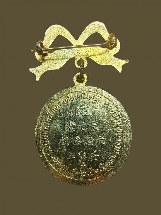 เหรียญเข็มกลัดองค์ไต้เสี่ยฮุกโจ้วถนนตากสินสำเหร่เทียนง้วนตึ้งซอยวัดสุทธารามจ.กรุงเทพปีพ.ศ.2525เนื้อกะไหล่ทองลงยามีโบว์กรรมการ |