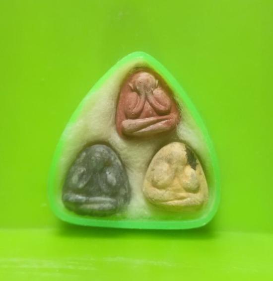 พระปิดตา ไตรแก้ว 3 องค์ครบชุด ปี ๒๕๑๒ พระธรรมโกษาจารย์ ชอบ อนุจารี วัดราษฎร์บำรุง ชลบุรี ผสมผงหลวงพ่อแก้ว จัดสร้างโดย หลวงพ่อบัว วัดบางเป้ง