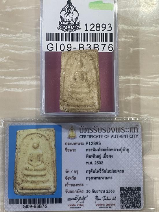 (เคาะแดง3900) +บัตรสมาคม สมเด็จพิมพ์ใหญ่ หลวงปู่ลำภู ลงกรุต้นโพธิ์ |