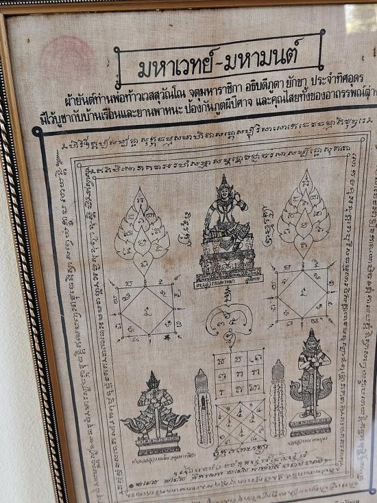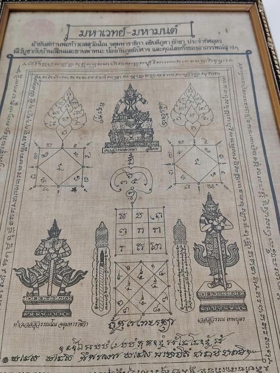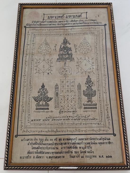 ผ้ายันต์ท้าวเวสสุวรรณ รุ่นแรก หลวงพ่ออิฏฐ์ วัดจุฬามณี ปี 2532 พร้อมกรอบ