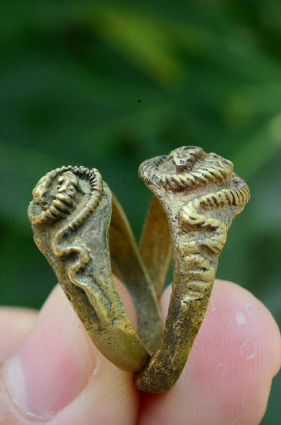 100 ส่งด่วน แหวนงูเกี้ยว หล่อโบราณ เก่าไม่ทราบที่ครับ 2 วง ครับ |