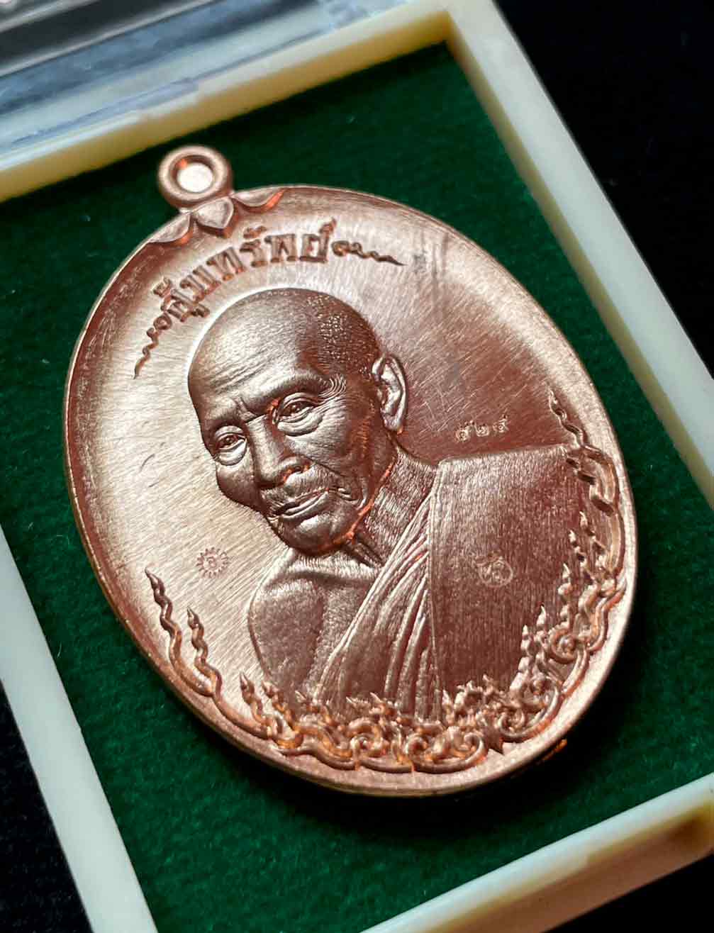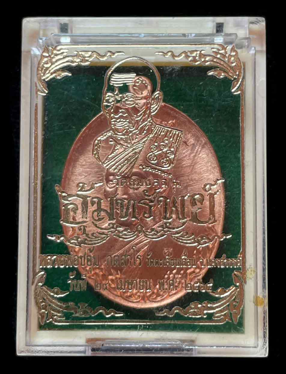 วัดใจ เหรียญ อุ้มทรัพย์ หลวงพ่อชอุ้ม วัดตะเคียนเลื่อน จ.นครสวรรค์ ปี 2564 เนื้อทองแดงผิวไฟ เลข 524 กล่องเดิม |
