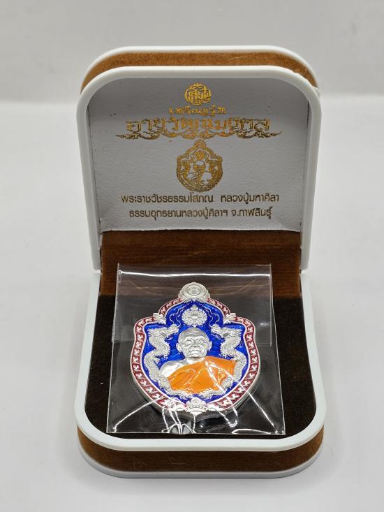 เหรียญ มังกรคู่ อายุวัฒนมงคล 81ปี หลวงปู่มหาศิลา หลวงปู่ศิลา สิริจันโท ธรรมอุทยาน วัดพระธาตุหมื่นหิน จ.กาฬสินธุ์ เนื้อเงินลงยาน้ำเงิน เลข ๕๗๘ มีกล่องเดิม |