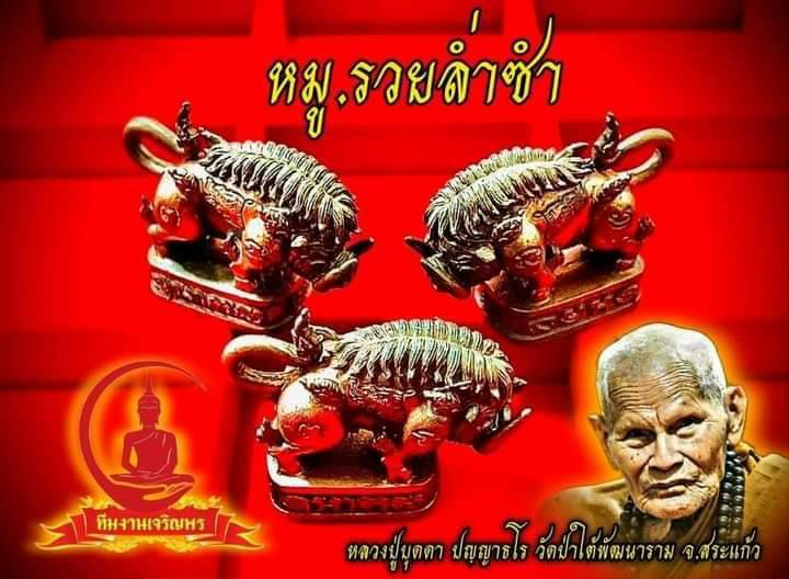 พญาหมูพลิกชะตา รุ่นรวยร่ำซำ หลวงปู่บุดดา วัดป่าใต้พัฒนาราม จ.สระแก้ว. รุ่นรวยล่ำซำ เนื้อทองแดงซาตินอุดผงมวลสารฝังตะกรุดทองฝาบาตร 1 ดอก จำนวนสร้างน้อย มีเพียง 441 องค์เท่านั้น น่าบูชาสุดๆ สวยมาก อนาคตต่อไปจะเป็นพระหลักของหลวงปู่บุดดาแน่นอนครับ ราคายังเบาๆอยู่ครับ เก็บได้รีบเก็บครับ พระหลวงปู่บุดดามีประสบการณ์มากกับผู้ที่แขวนบูชา อนาคตจะเป็นพระหลักของเมืองสระแก้วและภาคตะวันออกแน่นอนครับ โอกาสเป้นของผู้ที่มองเห็นเสมอ รับประกันชั้นหนึ่งครับ |