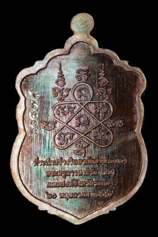 หลวงปู่ทิม วัดละหารไร่ เหรียญเสมา รุ่น มหาบารมี 59 เนื้อทองแดงมันผิวรุ้ง ลงยา หน้ากากเงิน ขอบปลอกลูกปืนลงยา หมายเลข 11879 กล่องเดิม |