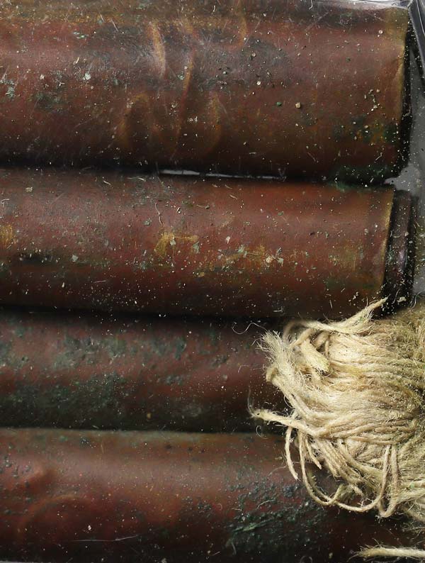 ตะกรุด 4 ดอก(ไม่ทราบที่) เนื้อทองแดง พร้อมเลี่ยมพลาสติก |