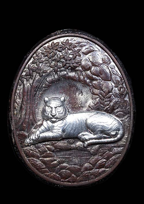 มาแรง เบี้ยแก้พญาเสือเฒ่านอนกิน องค์ครู รุ่นแรก พระอาจารย์ประสูติ (หลวงพ่อประสูติ) วัดในเตา จ.ตรัง เนื้อนวะโลหะพรายเงินหน้ากากเงิน จารยันต์ เลขเบิ้ลสวยๆNO.44 (รวมกันได้8) สวยมาก กล่องเดิมครับ |
