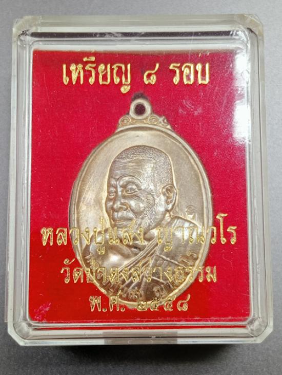 เคาะเดียว..เหรียญ 8 รอบ หลวงปู่แสง ญาณวโร วัดป่าดงสว่างธรรม ปี2558 เนื้ออัลปากาสวยเดิมพร้อมกล่องครับ |