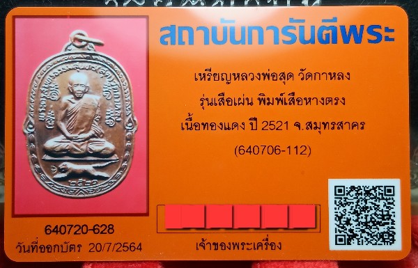เหรียญเสือเผ่น หลวงพ่อสุด วัดกาหลง พิมพ์เสือหางตรง เนื้อทองแดง ปี2521 พระสวยผิวเดิม สภาพตามรูปเลยครับมาพร้อมบัตรการันตีพระ |