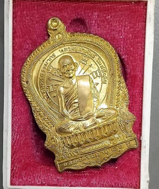 เหรียญนั่งพาน หลวงปู่คำพันธ์ ฉลองอายุครบ 80 ปี วัดธาตุมหาชัย จ.นครพนม ปี 2537 กล่องเดิม