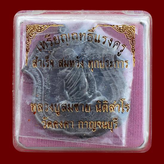 *** เคาะเดียวแดง ทุกรายการ *** เหรียญฤทธิ์แรงครูหลังพระพิฆเณศ เนื้อตะกั่ว หลวงปู่สมชาย วัดคงคา กาญจนบุรี ปี 2557 มีกล่อง สภาพตามรูป (No.1)
