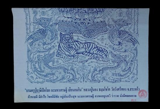 ผ้ายันต์"บรมครูปู่ฤาษีเปิดโลก นะมหาเศรษฐี เสือนอนกิน" หลวงปู่นอง วัดวังสีทอง จ.สระแก้ว |
