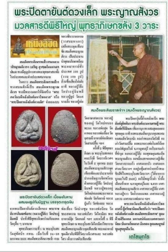 พระปิดตายันต์ดวงเล็ก ปี2523 สมเด็จพระญาณสังวร (เจริญ) วัดบวรนิเวศวิหาร ทรงอธิษฐานจิตและเข้าพิธี ณ อุโบสถคณะรังสีและวัดไตรมิตรวิทยาราม โดยมีพระคณาจารย์ในยุคนั้นร่วมพิธี เช่น
