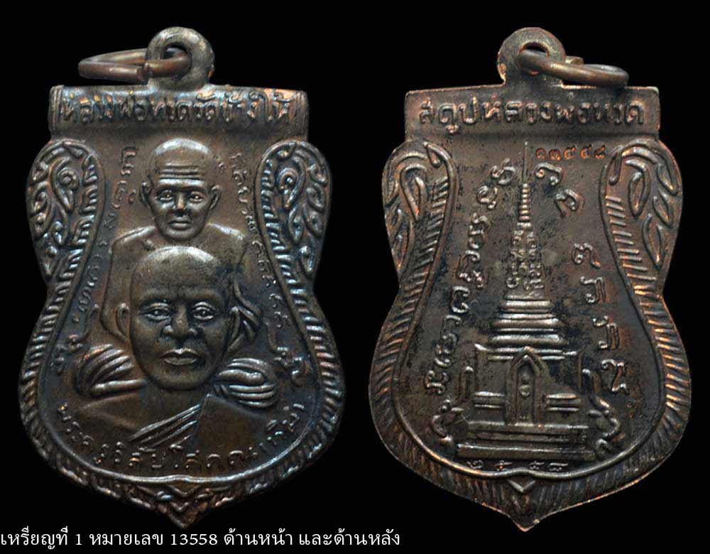 เหรีญเสมาเนื้อนวะ หลวงปู่ทวด วัดช้างให้ รุ่น สร้างพิพิทธภัณฑ์ 2558 หมายเลข 13558 และ 13626 พร้อมกล่องเดิมจากวัด(จำนวน2 เหรียญ)