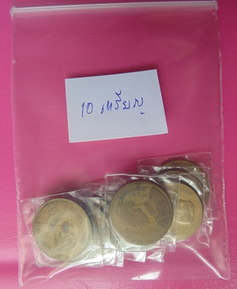 เหรียญกษาปณ์หมุนเวียน รัชกาลที่ 9 ชนิดราคา 50 สตางค์ ปี 2493 จำนวน 10 เหรียญ สภาพใช้ตามรูป.