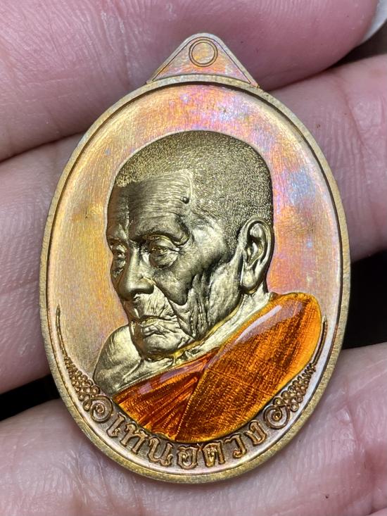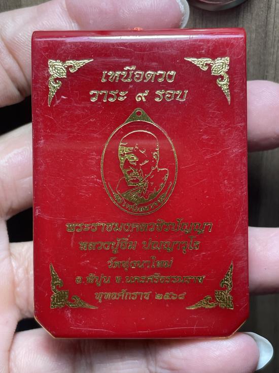 เหรียญเหนือดวง หลวงปู่อิ่ม วัดทุ่งนาใหม่ เนื้อทองแดงหน้ากากฝาบาตรลงยา สวยเดิมๆพร้อมกล่องคับ |