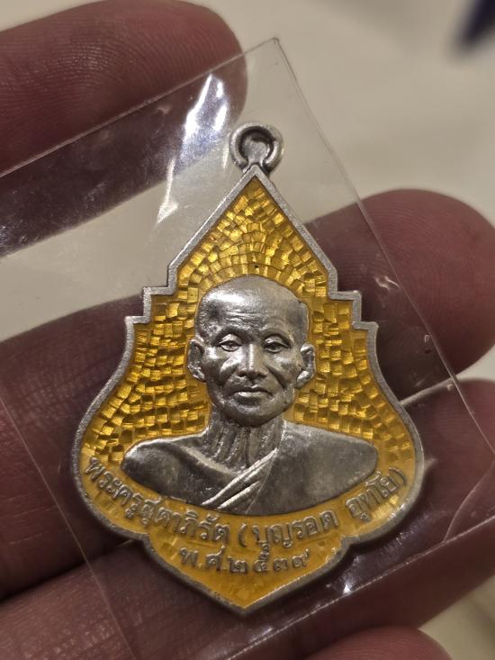 เหรียญเงินลงยาเหลือง พระครูสุตาภิรัต(บุญรอดอุทโย) วัดบางขันแตก จ.สมุทรสงคราม ปี 39 รุ่นสร้างศาลาการเปรียญ พร้อมกล่องราคาเบาๆ |