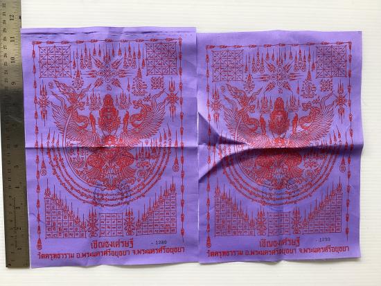 ผ้ายันต์ พญาครุฑทรงมหิธานุภาพ เชิญธงเศรษฐี วัดครุฑธาราม จ.พระนครศรีอยุธยา ขนาด A4 ( 2 ผืน ) |