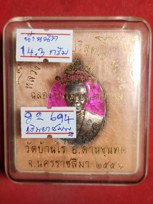 เหรียญหลวงพ่อคูณ ปริสุทโธ รุ่น ฉลองวิหารเทพ ออกวัดบ้านไร่ ปี 56 เนื้อ เงินลงยาสีชมพู หมายเลข 694 สภาพสวย เคาะเดียวแดง |