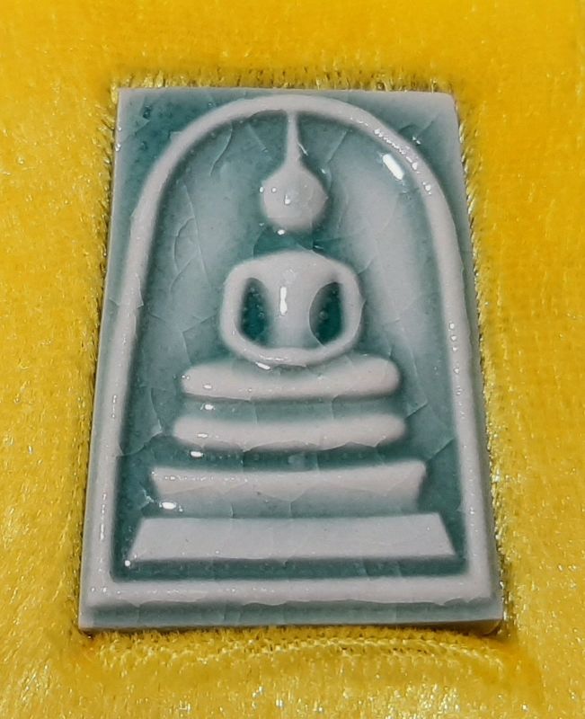 สมเด็จยกฐานะเจ้าสัว หลวงปู่ศิลา ปี 2567 รุ่นสำเร็จทุกอย่าง เนื้อกระเบื้องเคลือบเขียว กล่องเดิม |