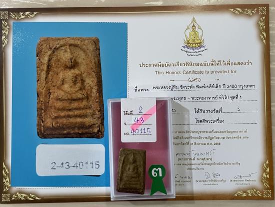 สภาพสวย สมบูรณ์ ไม่หักไม่ซ่อม รับประกันพระแท้ ดูง่าย ใบประกาศรางวัลที่3งานสมาคม