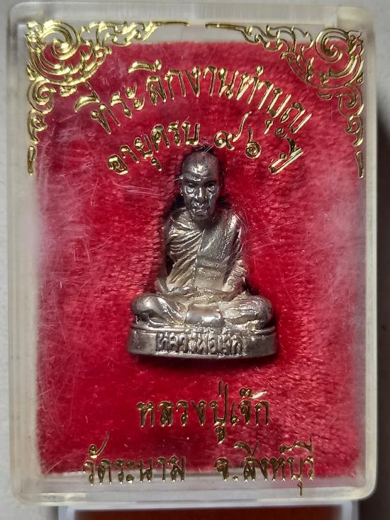 รูปหล่อ (เนื้อเงิน) หลวงพ่อเจ็ก วัดระนาม จ.สิงห์บุรี พร้อมกล่อง |