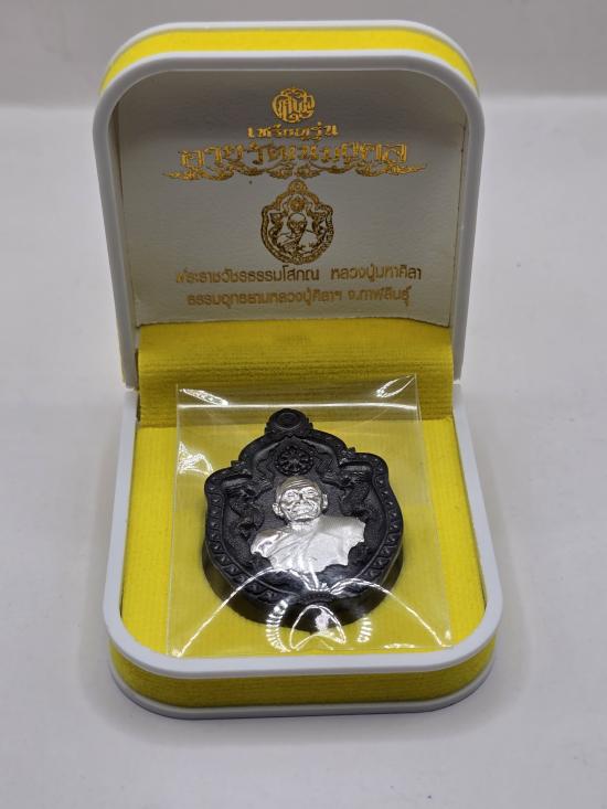 เหรียญหล่อ มังกรคู่ อายุวัฒนมงคล 81ปี หลวงปู่มหาศิลา หลวงปู่ศิลา สิริจันโท ธรรมอุทยาน วัดพระธาตุหมื่นหิน จ.กาฬสินธุ์ เนื้อหล่อนวะโบราณ หน้ากากเงิน เลข ๑๔๔ มีกล่องเดิม