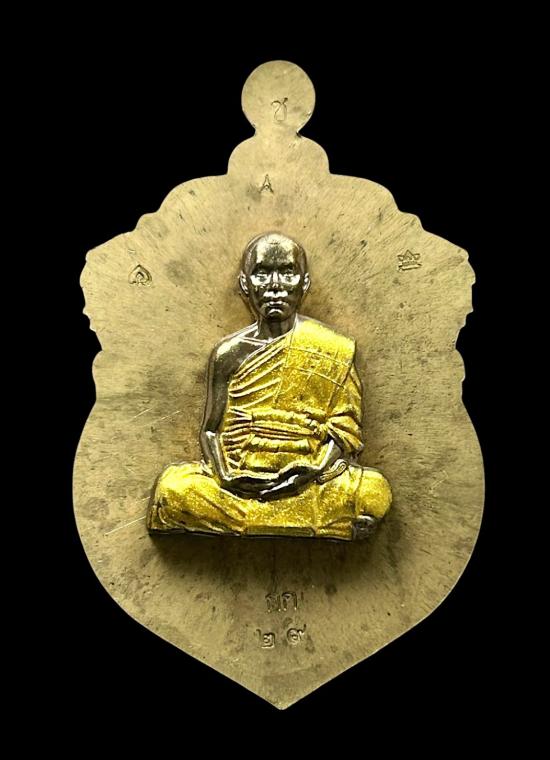 ด้านหลังติดลอยองค์ครึ่งซีกเนื้อนวโลหะองค์ทาทอง สร้างน้อยเพียง 168 เหรียญเท่านั้น