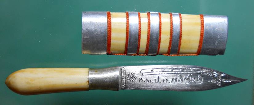 มีดหมอยุคแรก"จักรนารายณ์" หลวงพ่อประเทือง วัดหนองย่างทอย ด้ามและฝักงา ขนาด 4.5 นิ้ว จ.เพชรบูรณ์