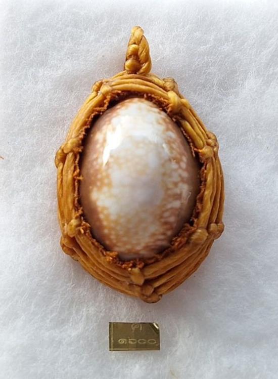 เบี้ยแก้ หุ้มจีวร ถักเชือก หลวงปู่ศิลา วัดโพธิ์ศรีสะอาด มีแผ่นเลขกำกับ ฝังตะกรุดทองเหลือง พร้อมใบคาถา ปี2567 |