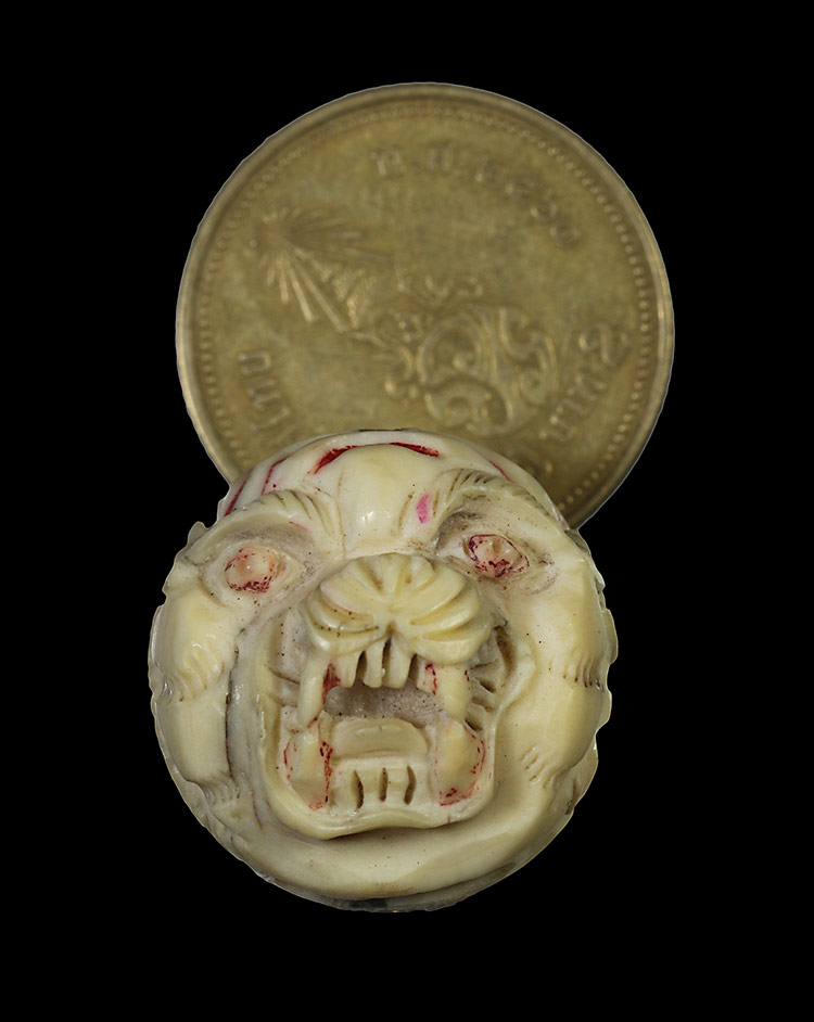 วัดใจ**เครื่องราง ลูกอมหน้าเสือเนื้องาแกะ*{ ฝังตะกรุดทองคำ 2.ดอก }*หัวท้าย ของทนสิทธิ์มีดีในตัว ศิลป์สวย....หายากครับ