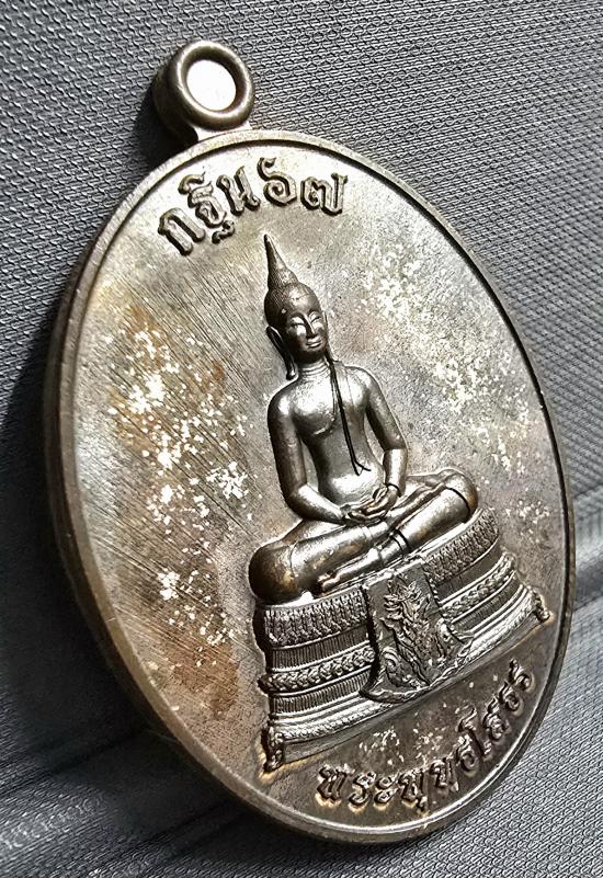 เนื้อนวะโลหะ พรายเงิน หลังฝังพลอยเขียว หมายเลข ๑๒๔...พร้อมกล่อง