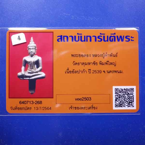 พระยอดธง หลวงปู่คำพันธ์ พิมพ์ใหญ่ วัดธาตุมหาชัย เนื้ออัลปาก้า ปี2539....4...64.8.1