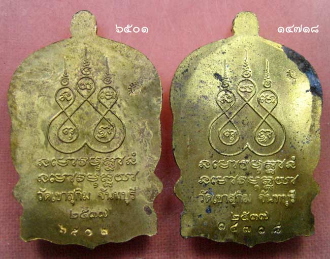 เหรียญนั่งพาน เนื้อทองเหลือง หลวงพ่อสมชาย วัดเขาสุกิม ตอกโค้ด ส และโค้ด จำนวน 2 เหรียญ หมายเลข ๖๕๐๑ และ ๑๔๗๑๘ ได้มาจากคนในพื้นที่