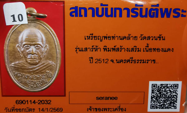 เหรียญพ่อท่านคล้าย วัดสวนขัน รุ่นเสาร์ห้าพิมพ์สร้างเสริม เนื้อทองแดง ห่วงเดิม ปี2512 จ.นครศรีธรรมราช + บัตรG-pra สภาพเดิมค่ะ |