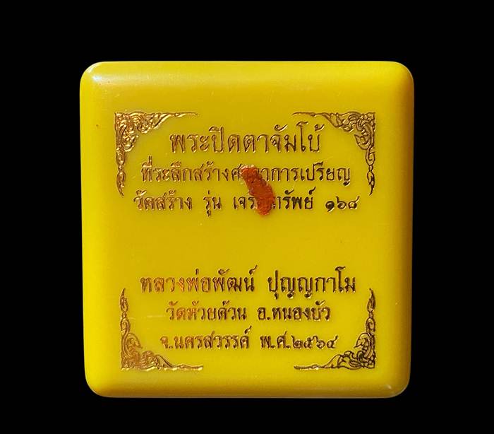 พระปิดตาจัมโบ้ รุ่น "เจริญทรัพย์ 168" ที่ระลึกสร้างศาลาการเปรียญ หลวงพ่อพัฒน์ นครสวรรค์ ปี 2564 เนื้อว่านเกษรฝังตะกรุดทองคำ 1 ดอก # 297 เคาะเดียวกล่องเดิมครับ |