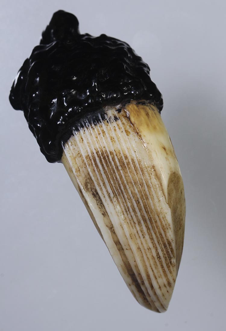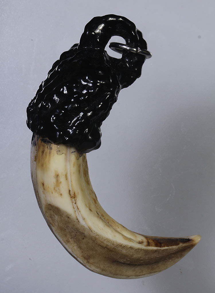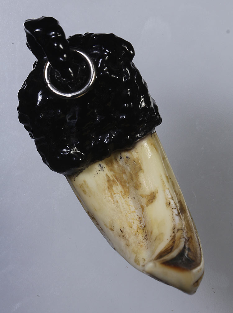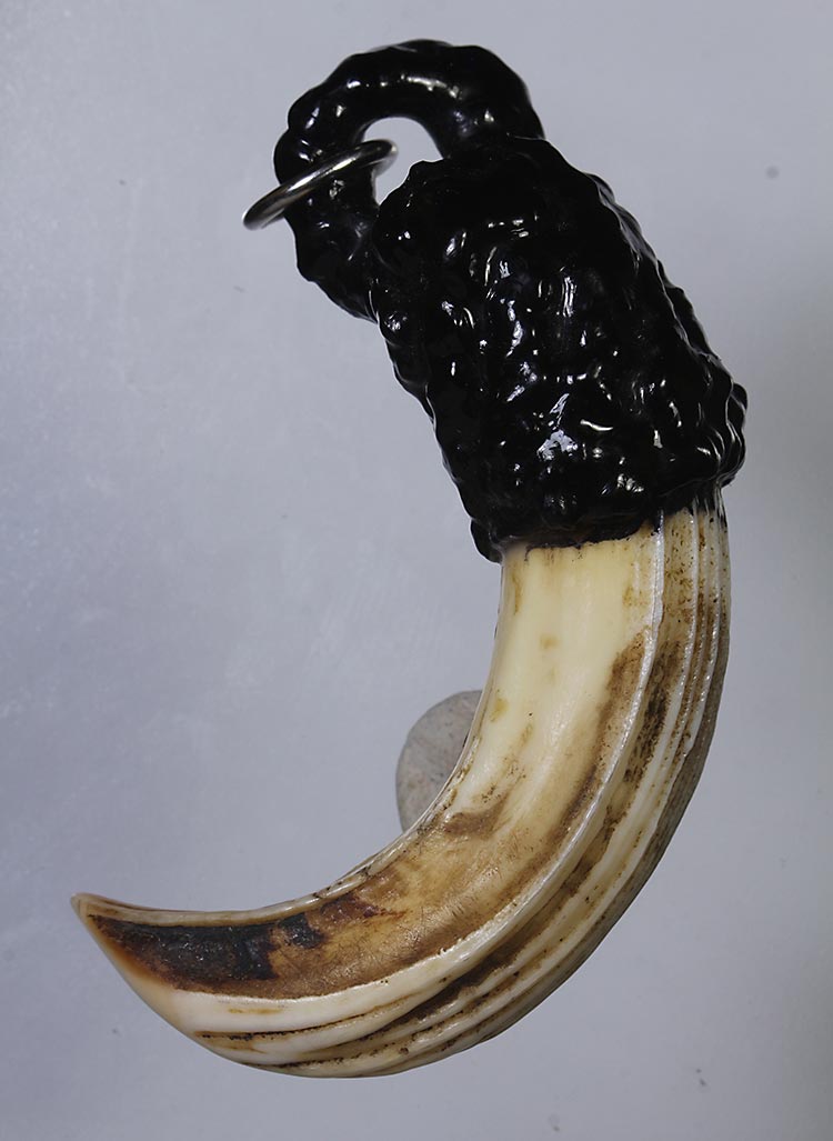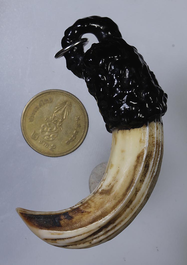 วัดใจ**เครื่องราง เขี้ยวหมูตันแกะ ถักเชือกลงรักเก่า ของทนสิทธิ์มีดีในตัว ...ตามสภาพครับ
