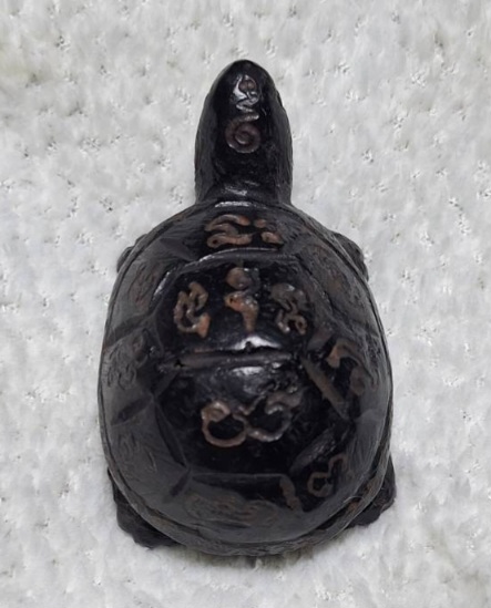 เต่าเนื้อแร่เขาอึมครึมแกะสลักเปนเต่า มีจารยันต์ ขนาดหัวหาง8cmกว่า สูง4cm กว้าง5cm ไม่ทราบที่ มีท่านผู้รู้บอกเนื้อแร่จากเขาอึมครึม ปัจจุบันสงวนแล้วนำออกไม่ได้ พิจารณาให้ชอบก่อนเคาะประมูลครับ