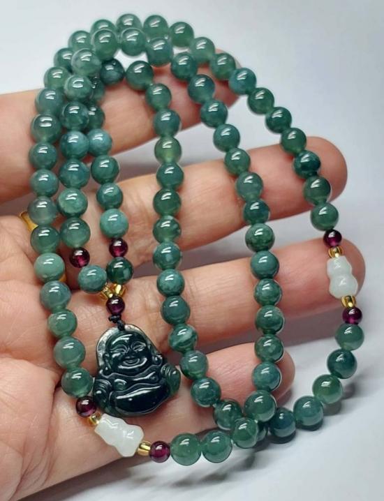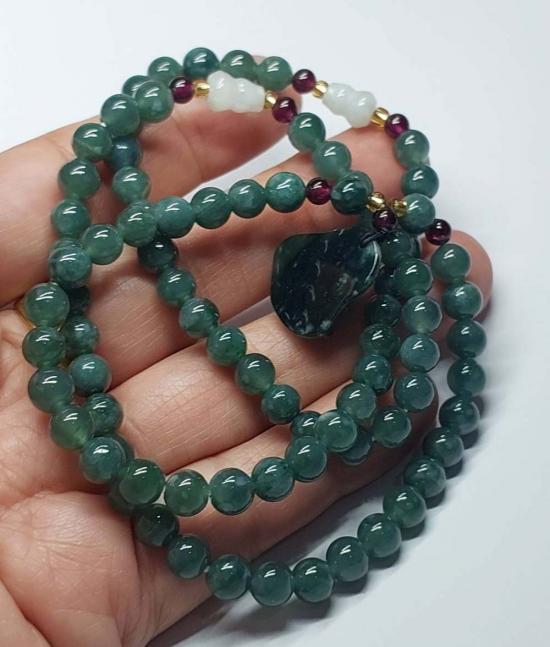 ***วัดใจ***สร้อยหยกจักรพรรดิ์ ขั้นด้วยโกเมน พร้อมจี้ สวยๆ เม็ด 6 มิล ยาว 22 นิ้ว |
