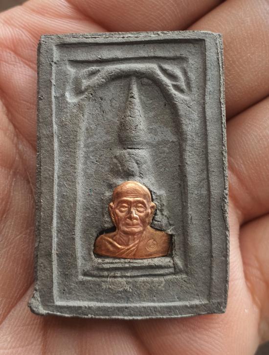 วัดใจพระผงหลวงพ่อทวด พิมพ์กลักไม้ขีด รุ่นทองฉลองเจดีย์ ปี 2552 เนื้อว่านกากยายักษ์ อาจารย์ทอง วัดสำเภาเชย หลังหน้ากากทองแดง |