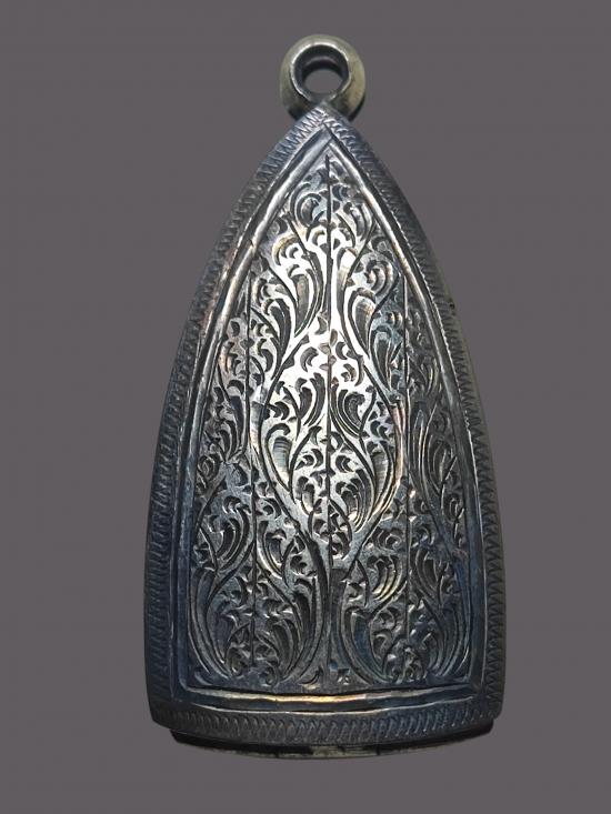 ตลับเงินแท้สั่งทำงานแกะมือ มือ2 ใส่พระกริ่ง