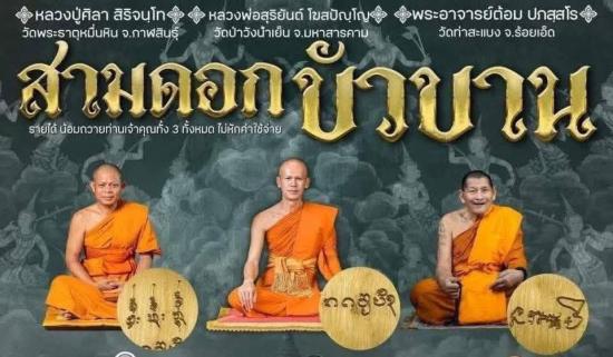 เหรียญสามบัวบานแดนอีสาน หลวงปู่ศิลา สิริจันโท พระอาจารย์ต้อม และพระอาจารย์สุริยันต์ เนื้อฝาบาตร ชีลเดิม ลุ้นเลขสวย |
