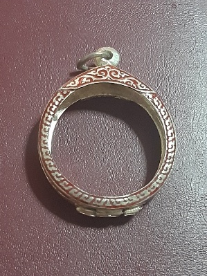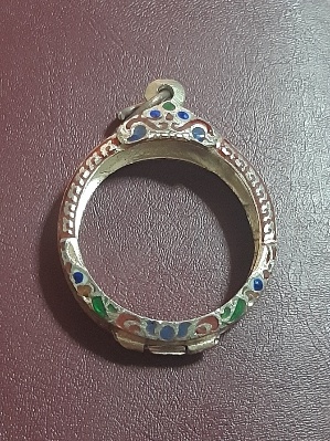 กรอบพระลงยากลมเนื้อโลหะ ขนาดวัดใน กว้าง 3.2 ซม. ยาว 3.2 ซม. สภาพสวย (เคาะเดียว)