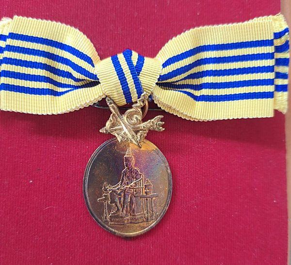 เหรียญที่ระลึกประดับแพรแถบ พระราชพิธีฉลองสิริราชสมบัติครบ 50 ปี ( กาญจนาภิเษก ) ปีพุทธศักราช 2539 เนื้อเงิน กะไหล่ทอง |