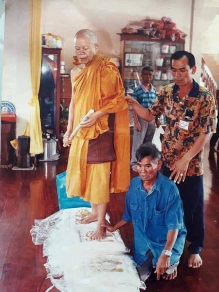 มาคู่ ผ้ายันต์ รอยมือ + รอยเท้า หลวงพ่อคูณ ปริสุทโธ วัดบ้านไร่ นครราชสีมา ปั๊มตราวัด ปี 2551 เเบบสกรีน ( พร้อมรอยจารหลวงพ่อทองศิษย์หลวงพ่อคูณ วัดบ้านไร่ เมตาจารหมึกให้ครับ ) |