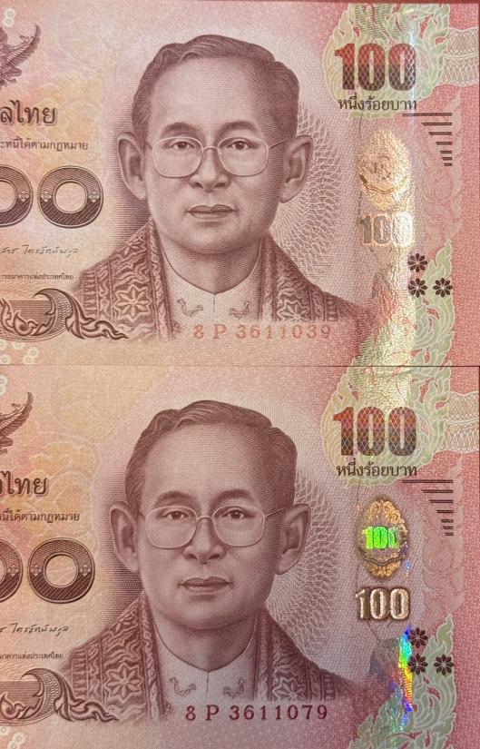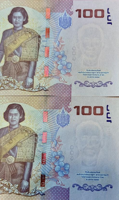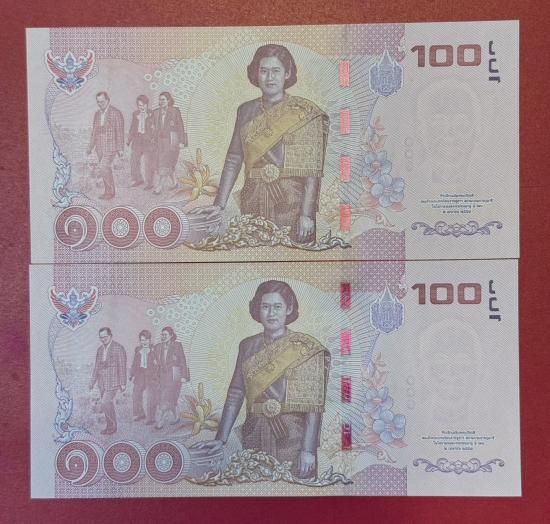 ธนบัตร 100 บาท รุ่นลองพระชนมายุ 5 รอบ ในสมเด็จพระเทพรัตนราชสุดาฯ สภาพสวยตามรูป จำนวน 2 ใบ |