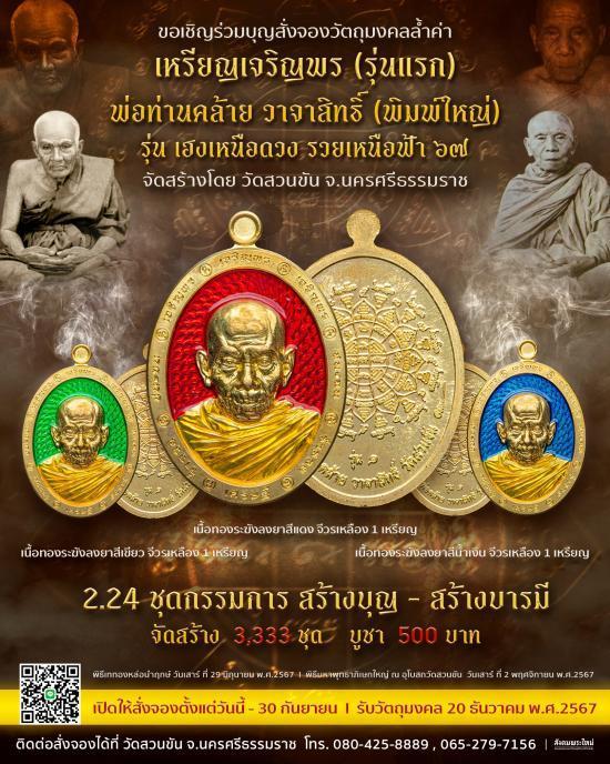 +!!เคาะเดียวllดง ตลอดสาย!!+ (รับ 2 เหรียญ เลข 9) เหรียญเจริญพร (รุ่นแรก) หลวงปู่ทวด-พ่อท่านคล้าย วัดสวนขัน จ.นครศรีธรรมราช รุ่นเฮงเหนือดวงรวยเหนือฟ้า ปี67 เนื้อทองระฆังลงยาน้ำเงิน+เขียว ชุดกรรมการ พร้ |
