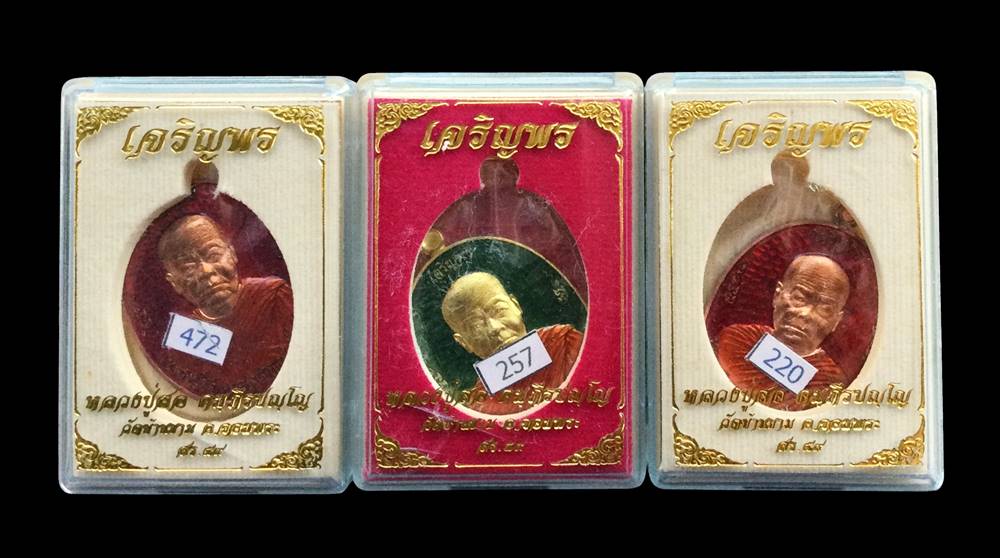 +!!เคาะเดียวllดง ตลอดสาย!!+ (รับชุด 3 เหรียญ) เหรียญเจริญพร หลวงปู่สอ วัดบ้านขาม จ.สุรินทร์ ปี2559 (เนื้อทองทิพย์ลงยา+ทองแดงลงยาแดง) เลขโค้ดสวยๆตามรูป พร้อมกล่องเดิมครับ |