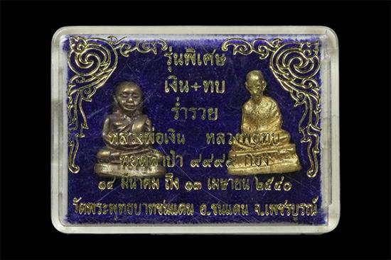 ชุดพระ รุ่นพิเศษ เงิน+ทบ ร่ำรวย หลวงพ่อเงิน หลวงพ่อทบ วัดชนแดน จ.เพชรบูรณ์ ปี 2540 ครบชุดกล่องครบแบบนี้หายากมากครับ วัดใจขายทุกราคาจบเท่าไหนเอาเท่านั้นครับ |