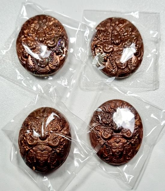 เหรียญพญาราหู พระอาจารย์ประสูติ วัดในเตา เหรียญเทพราหู เนื้อสัมฤทธิ์แดงกรรมการ ฝังเม็ดกริ่ง 4องค์ |
